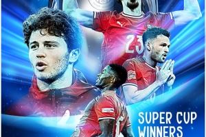 葡萄牙官方写道:“葡萄牙天才闪耀欧洲之巅,巴黎圣日耳曼夺得欧洲超级杯冠军。”