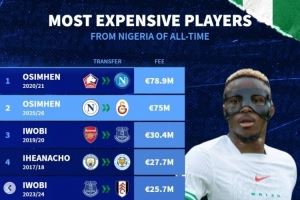 尼日利亚转会费榜:奥斯梅恩&伊沃比2上榜 伊希纳乔&伊哈洛在列